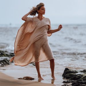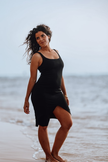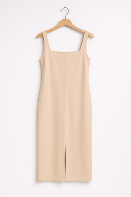 בנויה על קווים נקיים, בד נמתח, ודיוק שיודע איפה להחזיק ואיפה להרפות. השסע הקדמי הגבוה הוא פרט קטן עם נוכחות. לא שמלה שמצטרפת ללוק שלך – היא יוצרת אותו. שמלה נשית, חכמה, שיכולה להשתלב – ותמיד תוביל.